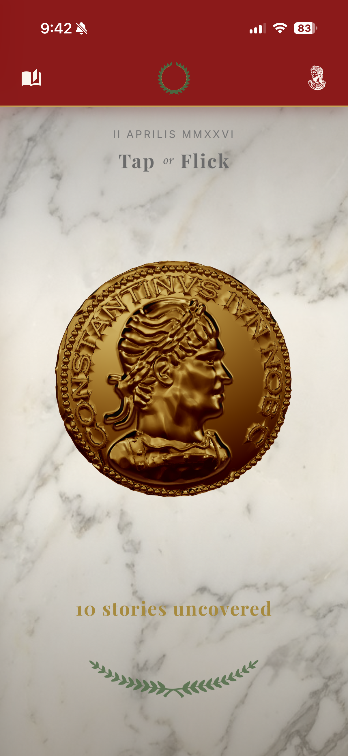 Roma Quotidiana delivers AI-generated daily facts with a 3D coin flip mechanic, Latin-to-English morphing animations, and deep customization across 8 historical eras and 18 topics.Features a Leitner-based spaced repetition quiz system with 6 question types, a scholar progression from Tiro to Imperator, an interactive map of the Roman Empire, and iOS home screen widgets.Live on the App Store.