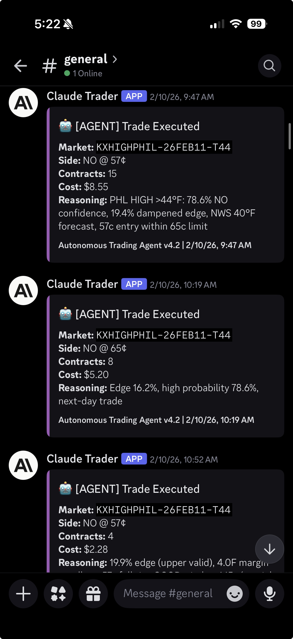 Pulls multi-source forecasts from NWS, HRRR, GFS, and ECMWF ensembles, calculates probability distributions for temperature buckets, and places maker NO orders when edge exceeds thresholds.Claude-powered agents scan markets every 30 minutes with position recovery and risk management, plus a BTC latency arbitrage strategy that reacts to Coinbase WebSocket price moves.Includes a Flask dashboard with real-time P&L tracking and an automated feedback loop for strategy self-improvement.