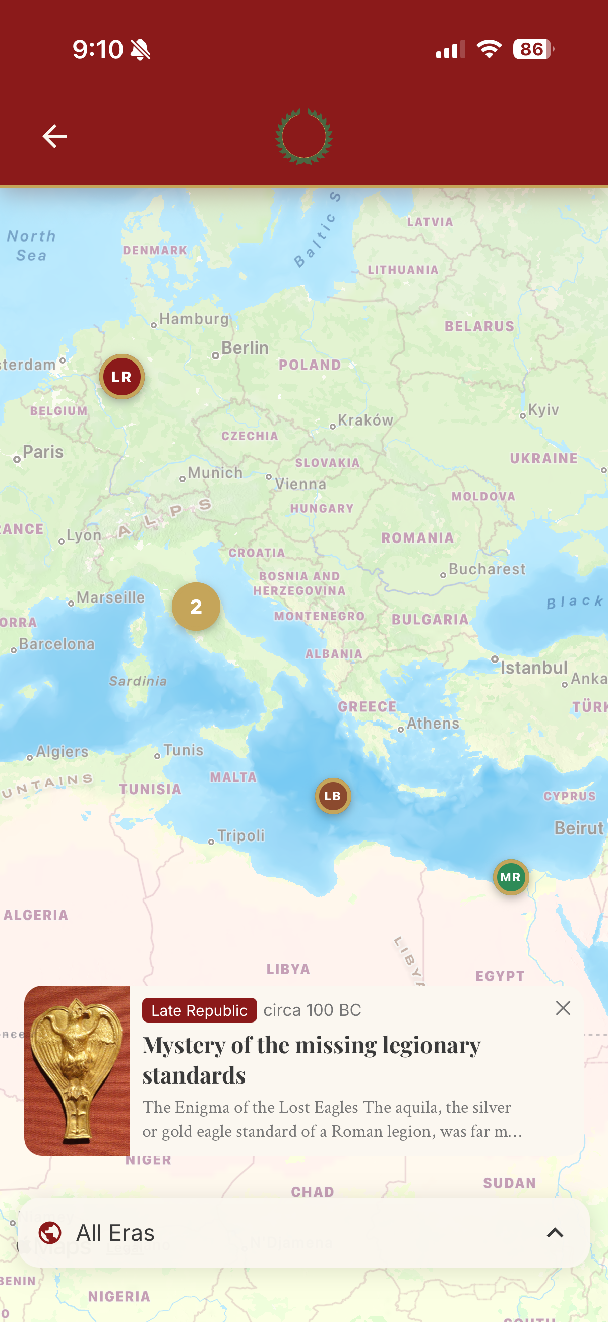Roma Quotidiana delivers AI-generated daily facts with a 3D coin flip mechanic, Latin-to-English morphing animations, and deep customization across 8 historical eras and 18 topics.Features a Leitner-based spaced repetition quiz system with 6 question types, a scholar progression from Tiro to Imperator, an interactive map of the Roman Empire, and iOS home screen widgets.Live on the App Store.